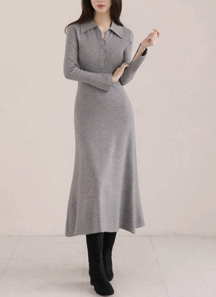 配色ジップアップカラースリムレイヤード風ロング長袖ワンピース
