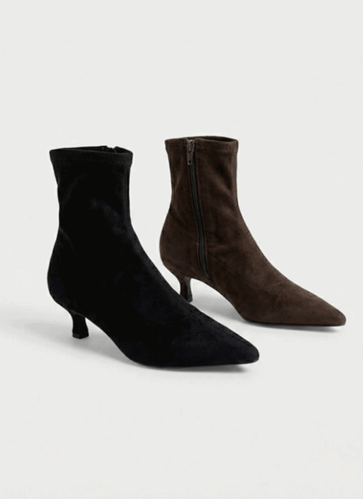 スエード調ストレッチスリムサイドジップアンクルブーツ