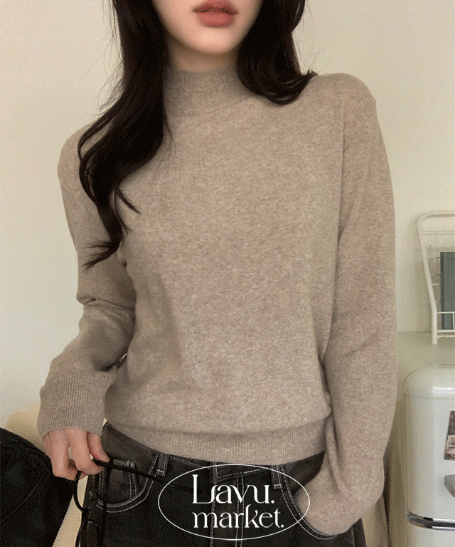 ストレッチウール混ハーフネックスリムルーズ長袖ニット