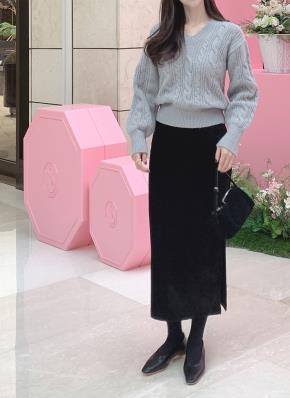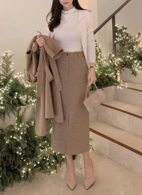 ファー裏地ウエストゴムスリムロングスリットスカート