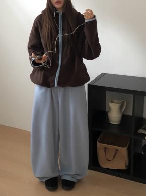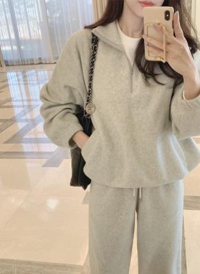 両起毛ソフトハーフジップウエストゴムルーズ長袖セットアップパンツスウェット