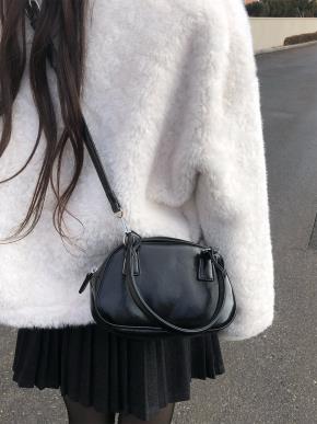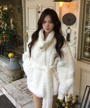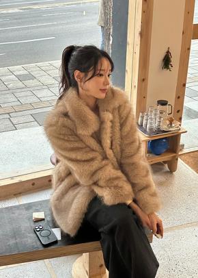 ソフトエコファーハーフネックポケットルーズ長袖スナップボタンコート