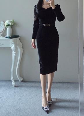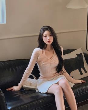 ニットリブスリムミニオフショルダーケーブルワンピース