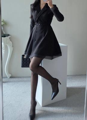 オーガンジー肩パッドHラインAラインカラーカラーワンピース