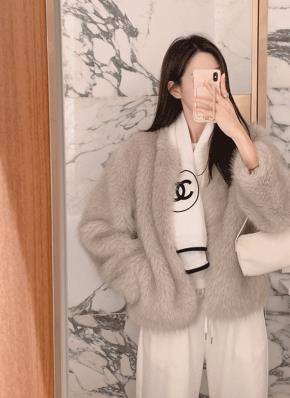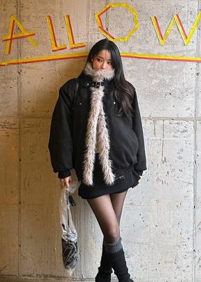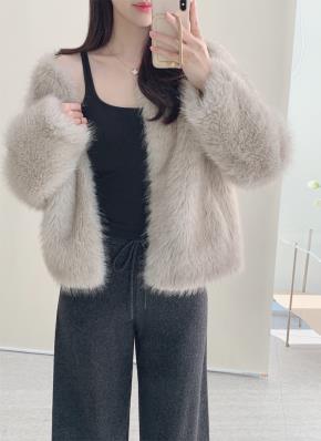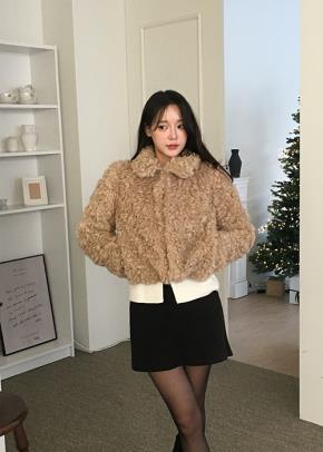エコファーボクシーハーフカラースナップボタンジャケット