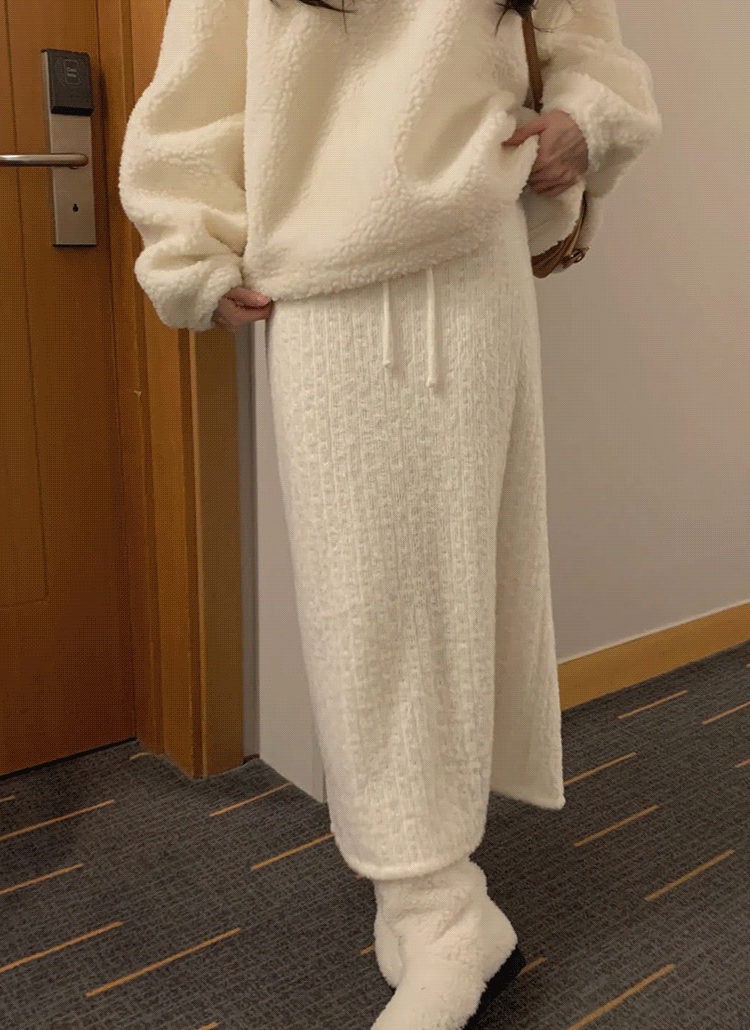 ファー裏地ウエストゴムドローストリングワイドカラーパンツ