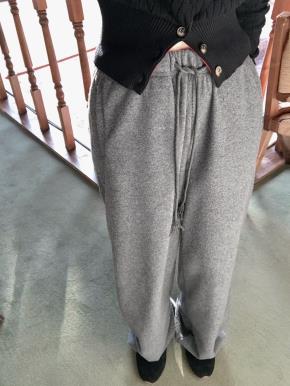 ファー裏地コーデュロイワイドウエストゴムドローストリングアーガイルパンツ