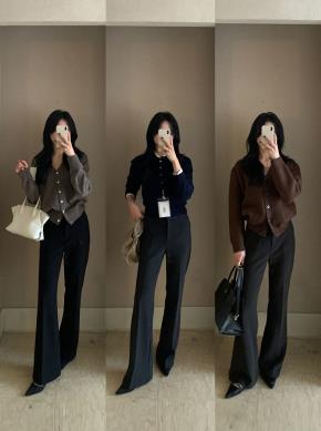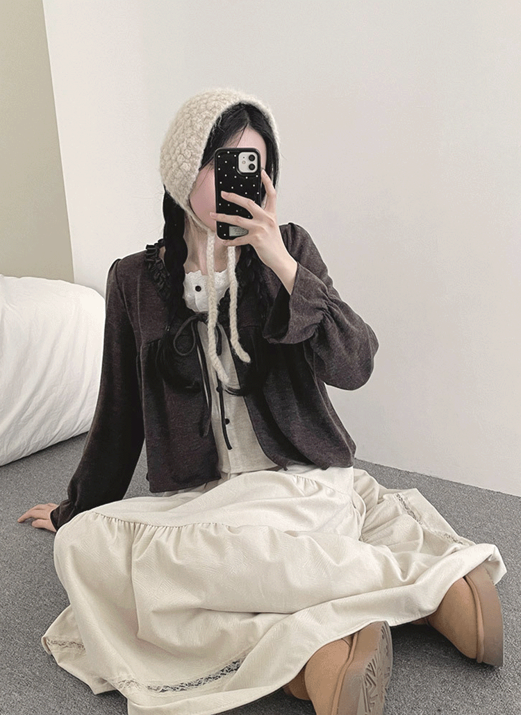 ニットソフトクロップド長袖アンサンブルカーディガンベスト