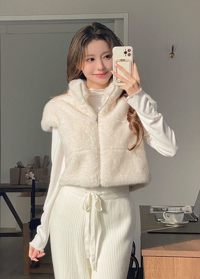リブエコファーVネックスリム長袖ニット3 SETケープ付ファーセット
