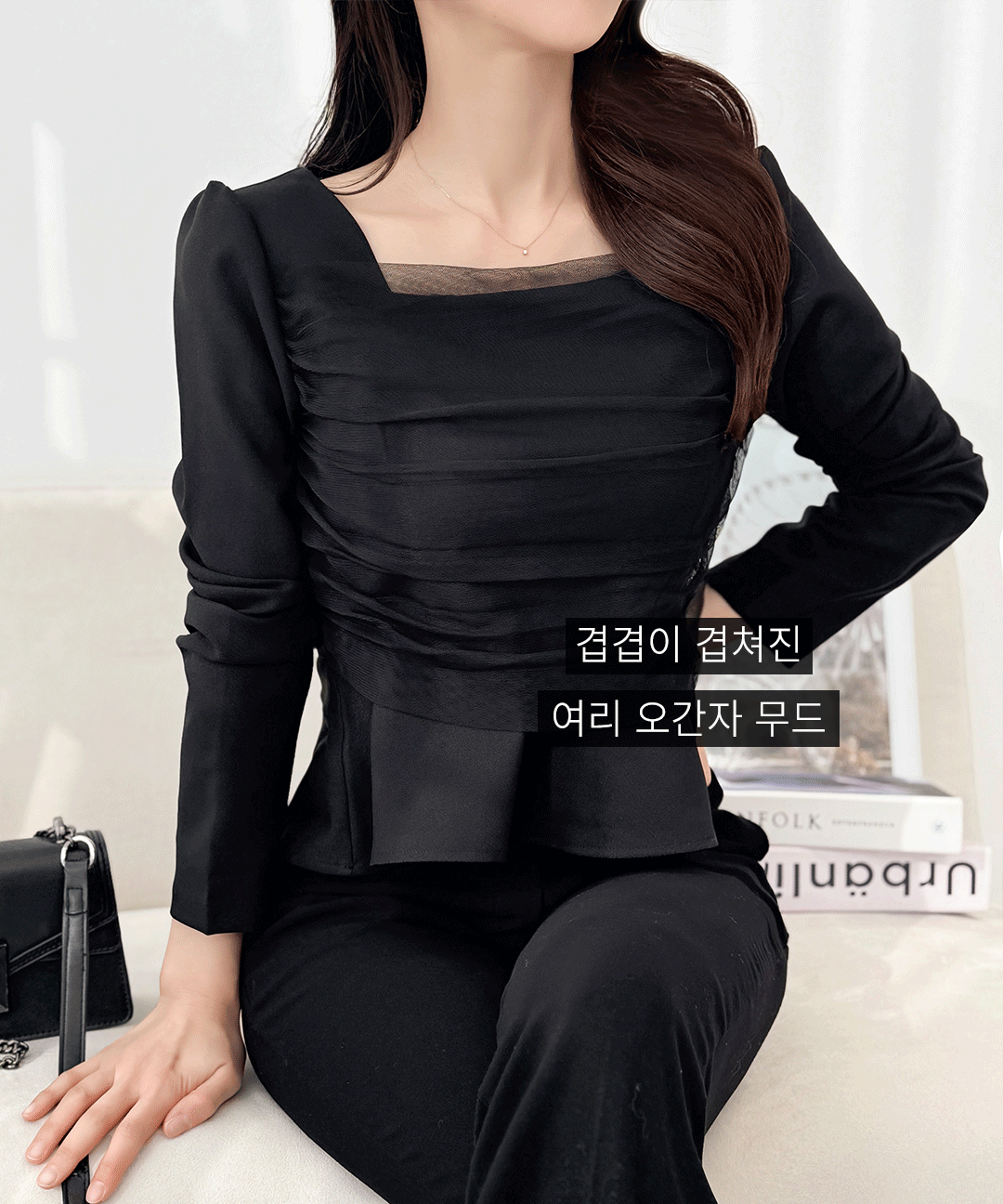 オーガンジースクエアネックペプラムセミクロップドブラウス
