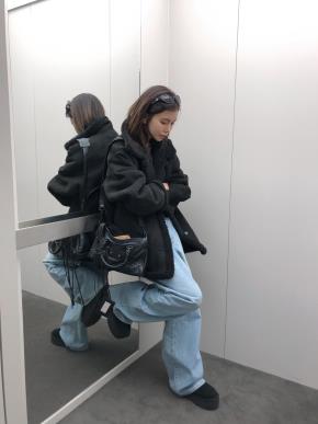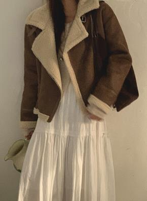 スエード調ボアファー裏地フラップポケットゴムカラー長袖オーバーサイズハーフネックダブルジップジャンパー