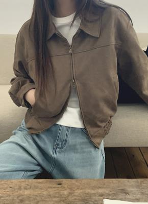 スエード調カラーポケットダブルジップドロップショルダージャンパー