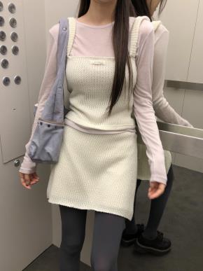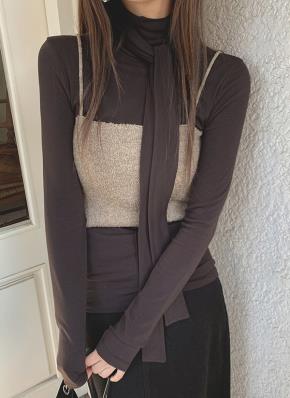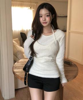 ソフトラウンドネックホルターネックスリム長袖ニットビスチェアンサンブル