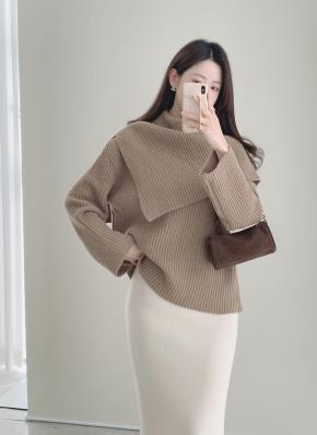 リブスリットオフショルダータートルネックカラーニット