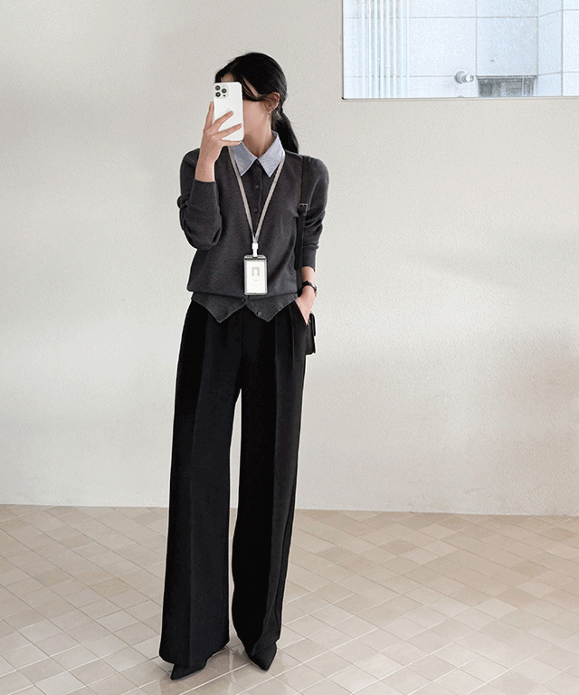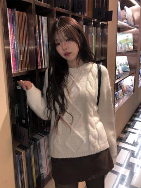 ウール混モヘア混ソフトラウンドネック長袖ベーシックスリムアンサンブルニットベスト