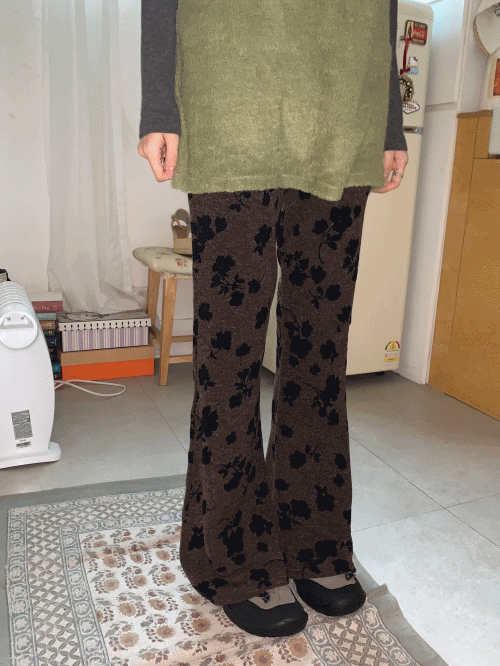 ニットウエストゴムスリムフレア花柄パンツトレーニング