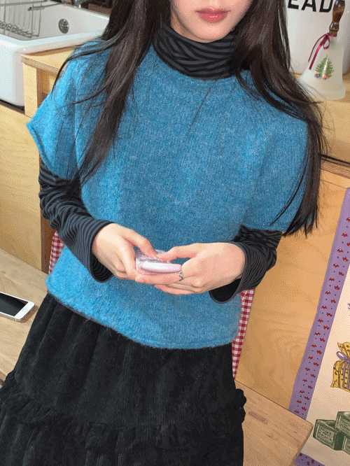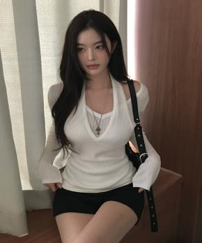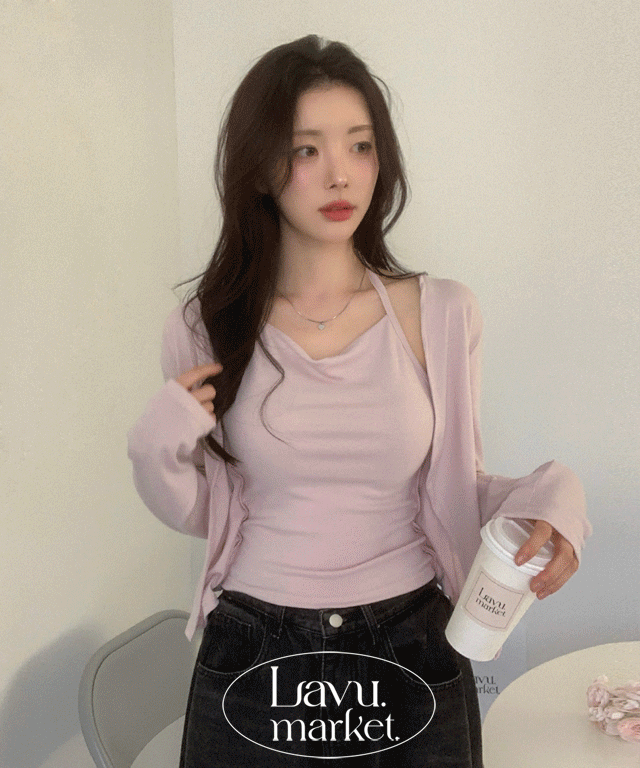 レイヤード風スリムホルターネックカーディガンTシャツ