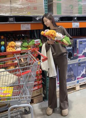 裏起毛ラウンドネックベーシックウエストゴム長袖ワイドセットアップパンツスウェットトレーニング
