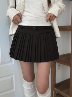 メルトンタッチプリーツバックゴムミニスカートベルト付