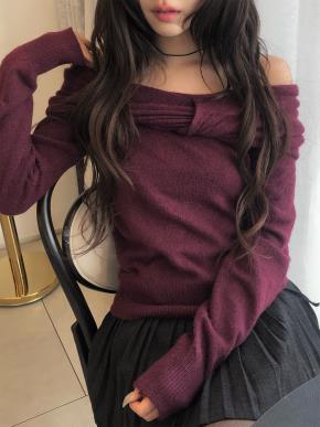 アルパカ混紡ワンショルダーオーバーサイズカラーニット