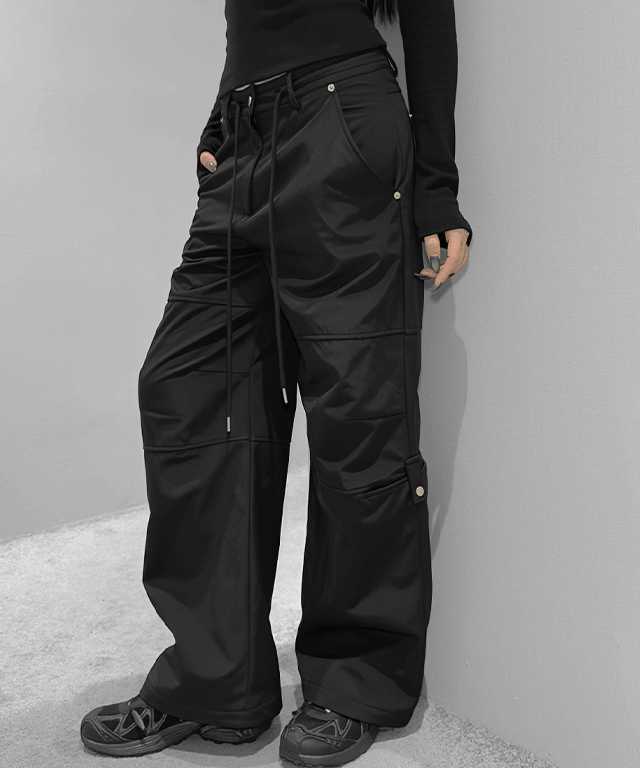 フリースウエストゴムフラップポケットワイドカラーパンツ