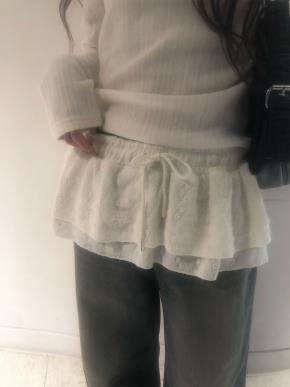 ドローストリングティアードウエストゴムミニ刺繍スカート