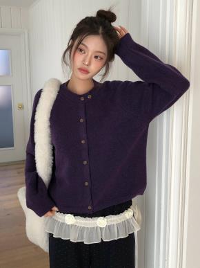 ボタンラウンドネックシンプルベーシックカラーカーディガン