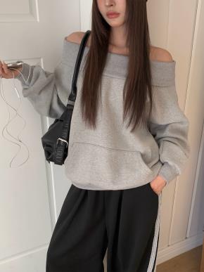 裏起毛オフショルダーオーバーサイズカンガルーポケットスウェット