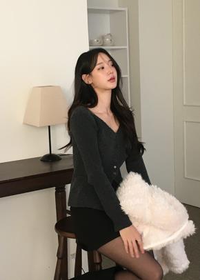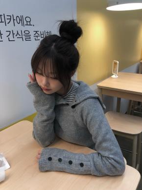 ウール混ボタンラウンドネックスリットベーシック長袖ニット