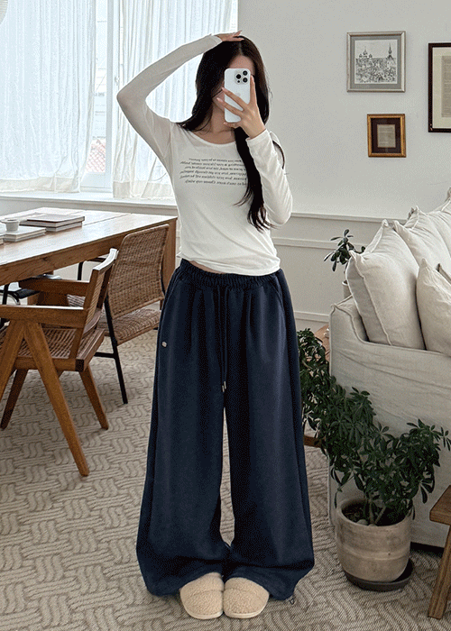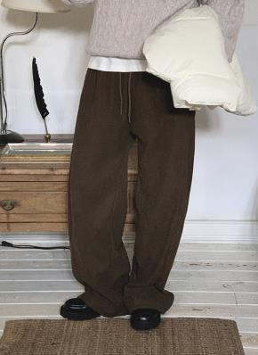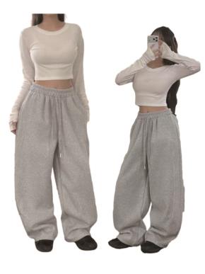 ファー裏地ワイドドローストリングウエストゴムラインドローコード無地トレーニングパンツ