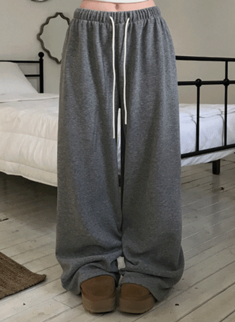 エコファーワイドドローストリングウエストゴムパンツ