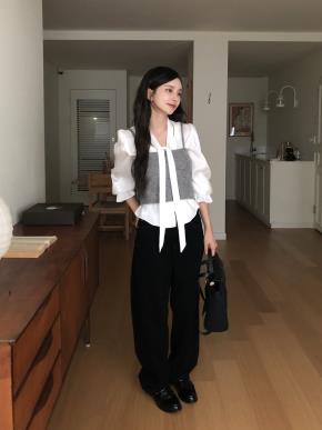 スリムレイヤードストラップボタン長袖アンサンブルカーディガンビスチェ