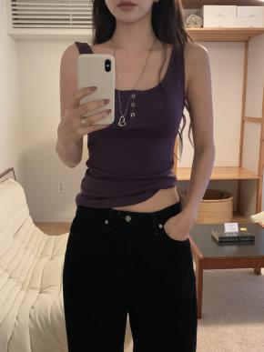 Uネックスリムハーフボタンスナップボタン無地キャミソール