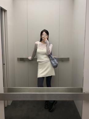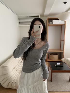 ウール混シースルーラウンドネック長袖スリムTシャツ