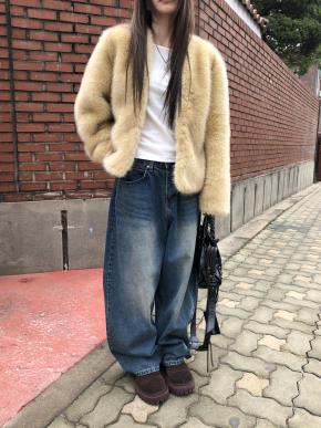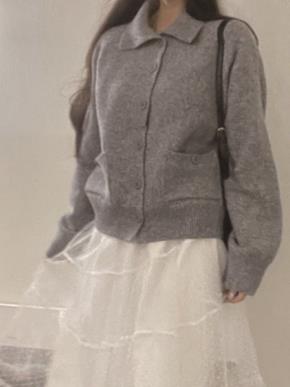 ブークレニットカラーボタンゴールドボタン長袖ルーズカーディガン