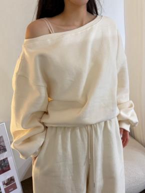 裏起毛コットンオフショルダーボクシー長袖無地スウェット