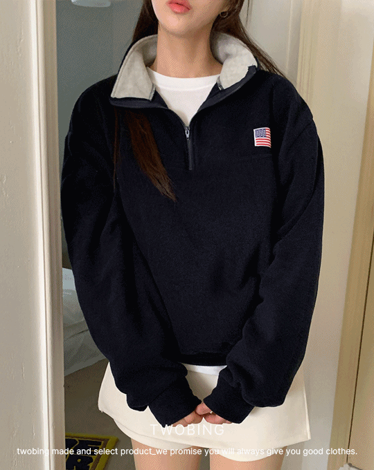 フリース配色ハーフジップパッチオーバーサイズ星条旗スウェット