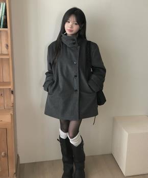 裏起毛中綿ボタンハイネックポケットショート長袖ハーフコート