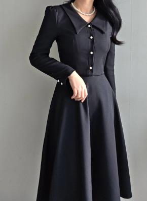 裏起毛オープンカラーシャーリングロングスリットスリムワンピース