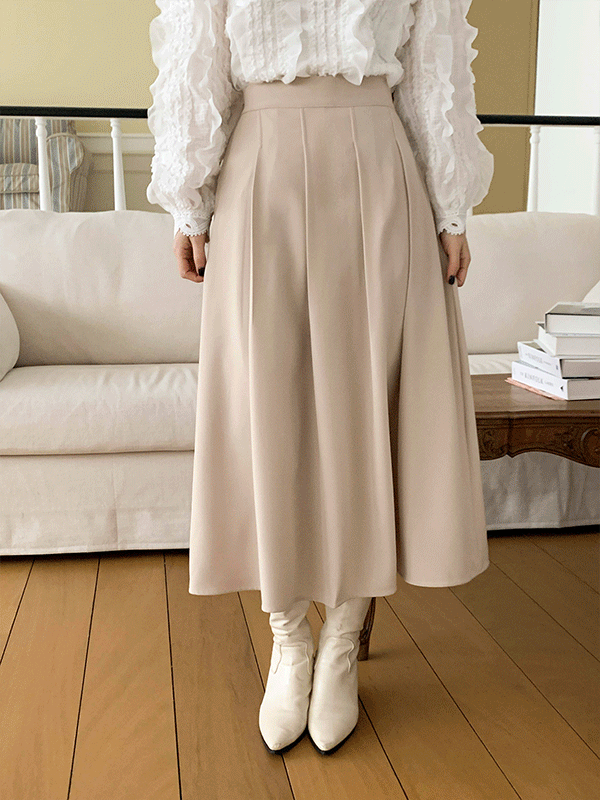フレアプリーツバックゴムロングジップアップスカート