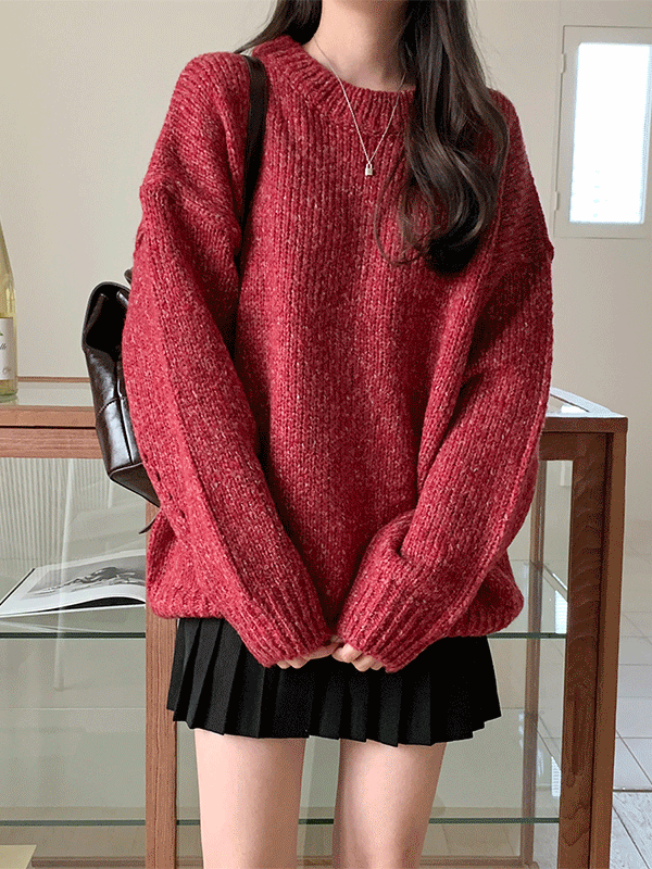 ラウンドネック長袖ルーズベーシックオーバーサイズニット