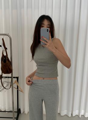 リブラウンドネックシンプルベーシックステッチノースリーブ
