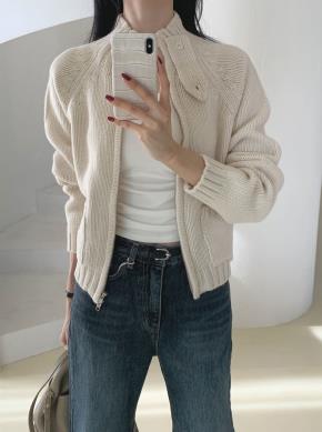 ウール混ハイネックポケットダブルジップカーディガン
