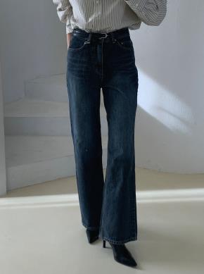 コットンウォッシングブーツカットディープブルーデニムパンツ