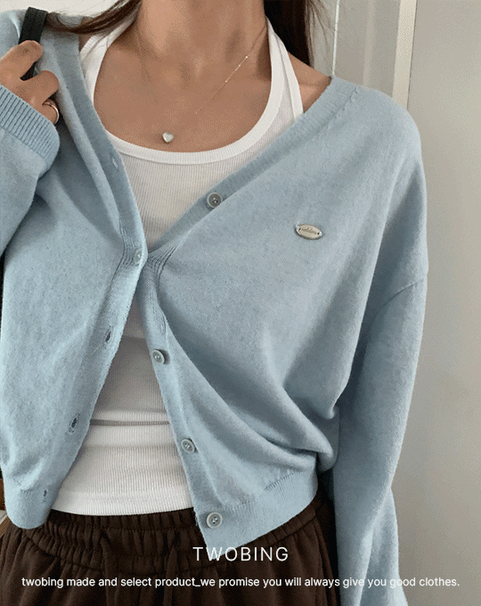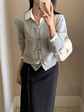 ウール混ラクーン混紡ボタンVネックベーシックカラーカーディガン