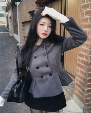 ボーイフィット肩パッド長袖オーバーサイズポケットオープンカラーダブルボタン無地ジャケット