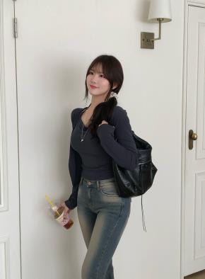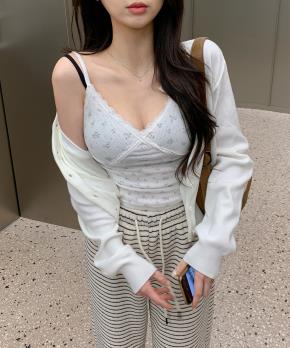 スリムVネックシャーリングクロップドカーディガンストラップ付