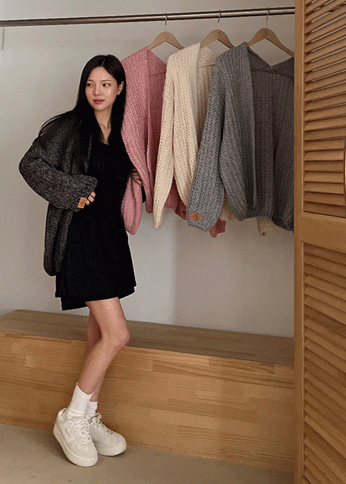 オーバーサイズ長袖ハーフバルーンルーズ無地カーディガン