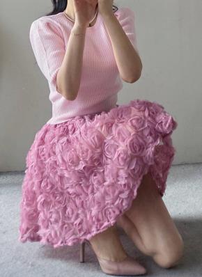 レースウエストゴムミニティアードフリルコサージュAラインスカート