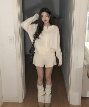 ニットスリム長袖ボタンアンサンブルカーディガンビスチェ